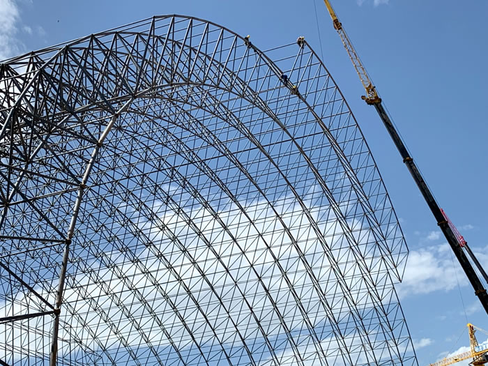 (2)网架加工前应对现场尺寸进行复测,确认无误后方可进行加工、安装;网架制作、运输、安装应遵守《空间网格结构技术规程》JGJ7-2010、《钢网架汾阳螺栓球节点》JG/T 10-2009、《钢网架汾阳螺栓球节点用高强度螺栓》 GB/T 16939-2016、《汾阳钢结构汾阳工程汾阳施工规范》 GB50755-2012、《汾阳钢结构汾阳工程汾阳施工质量验收标准》 GB50205-2020。